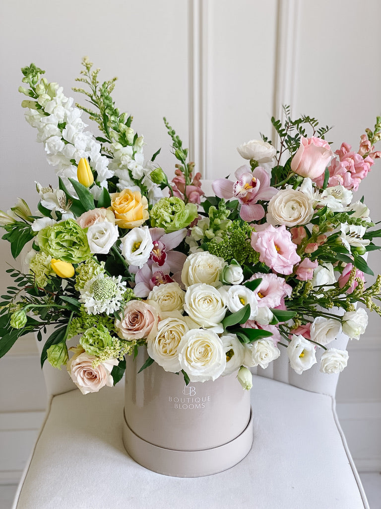 Every Boutique Blooms arrangement is designed in Toronto using premium, carefully selected stems chosen for beauty, freshness, and longevity. Our design style is modern, refined, and intentionally composed — with attention to colour, texture, and shape in every piece. The result is flowers that feel elevated on arrival and beautiful in the days that follow.