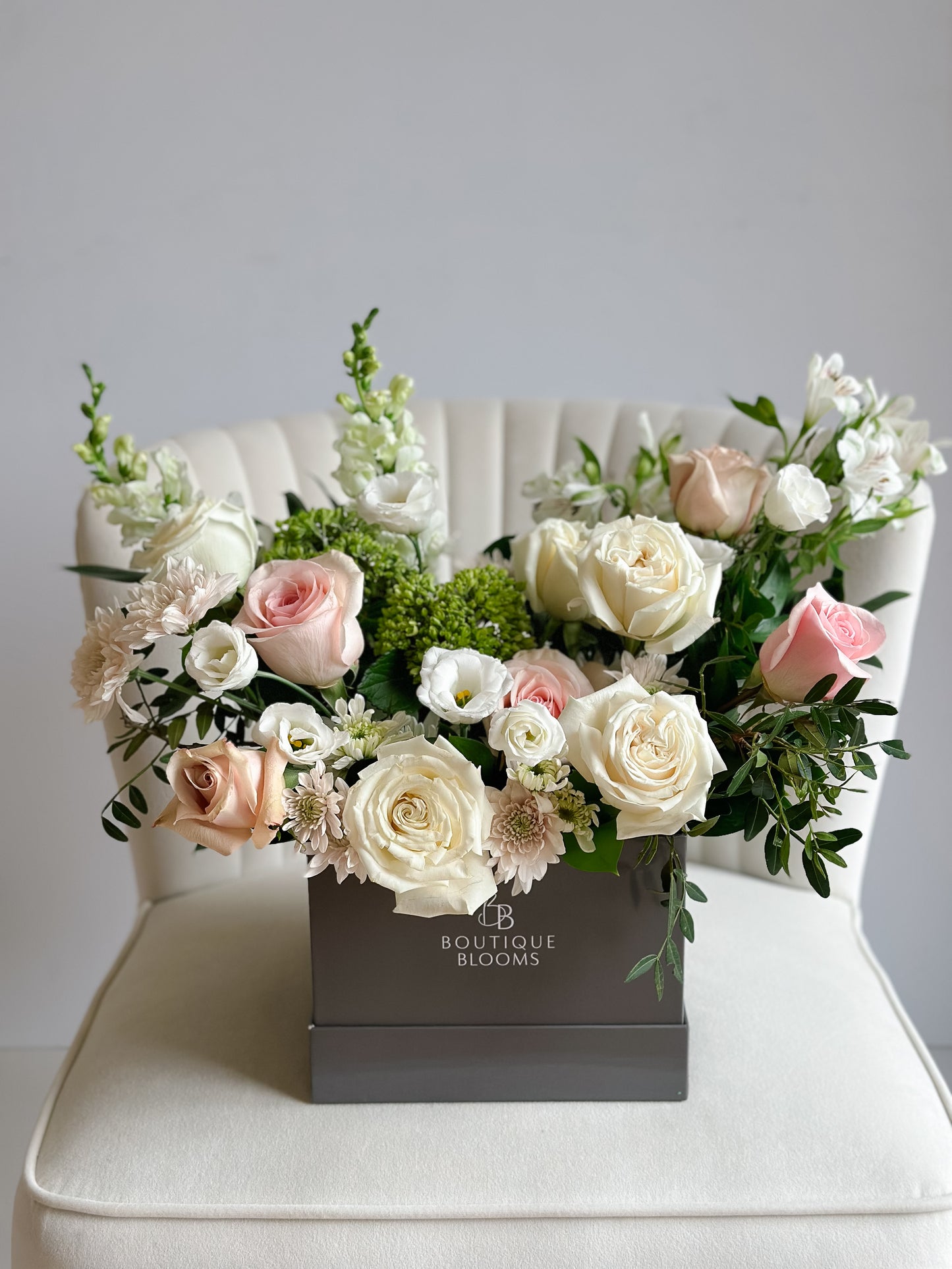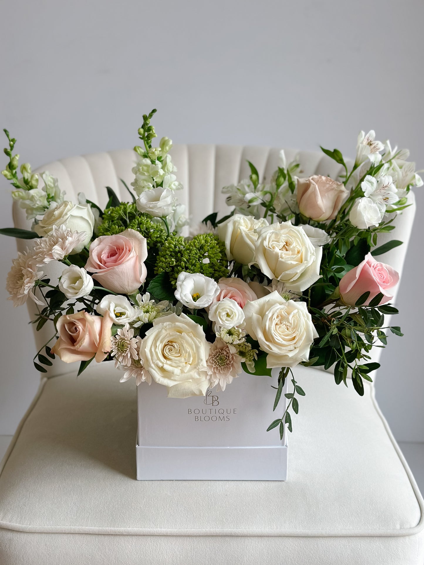 Blushing Blooms offers a blend of soft pink roses, creamy blooms, and lush greenery. You can't go wrong with this arrangement filled with effortless beauty, making it the perfect gift for birthdays, anniversaries, or simply to brighten someone's day. Its timeless elegance makes this a great gift for any occasion!