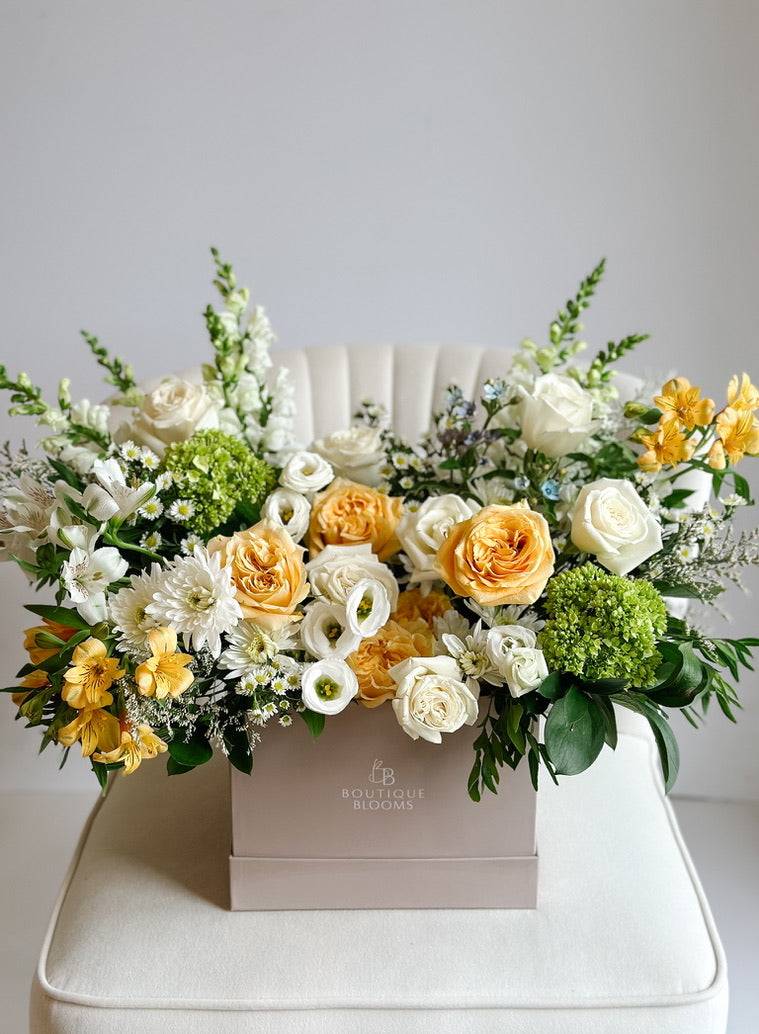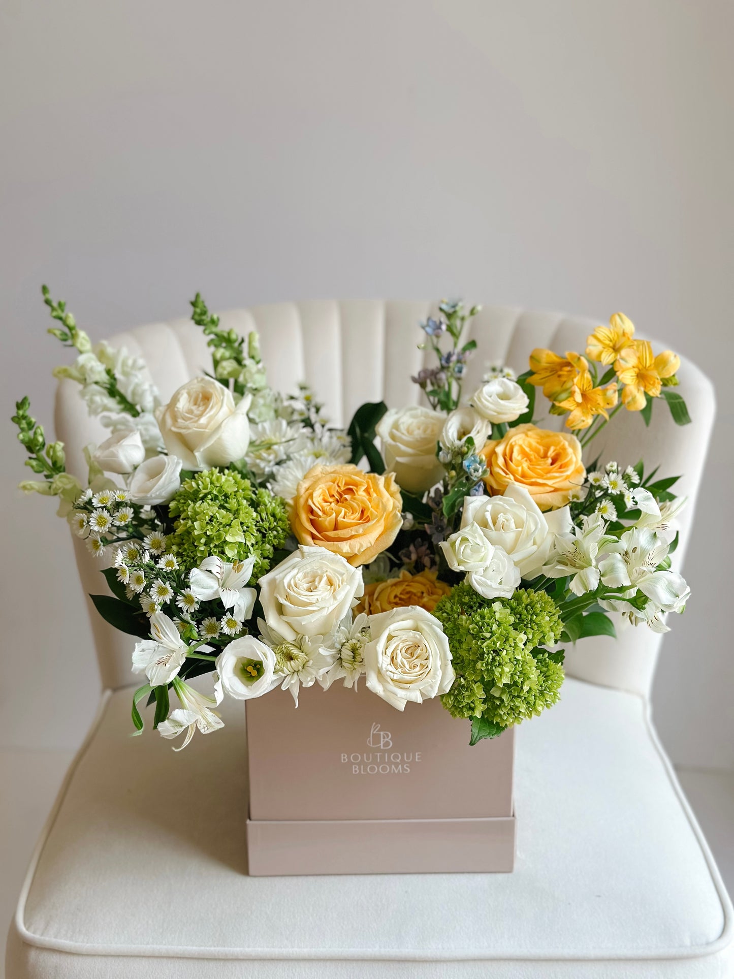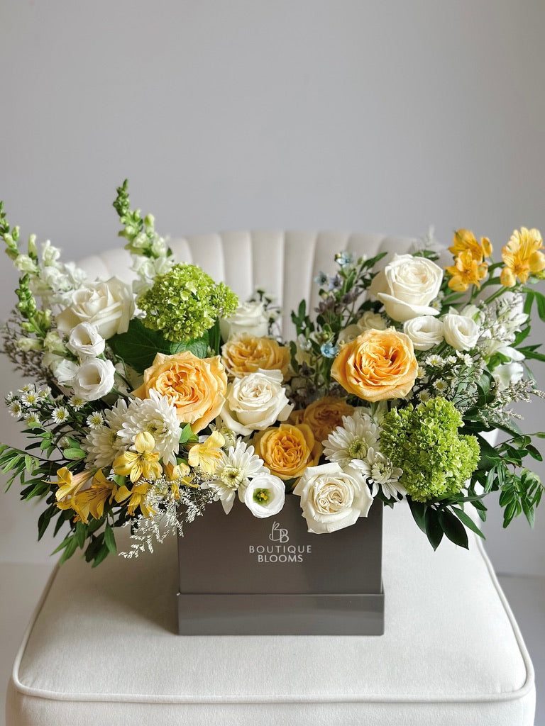 Mellow Yellow is a beautiful blend of vibrant blooms that’s sure to bring a smile to anyone’s face. With flowers like alstroemeria, green hydrangea, and premium roses, this arrangement feels fresh, bright, and full of life. Whether for a celebration or to brighten someone’s day, it’s a beautiful way to share a little sunshine.