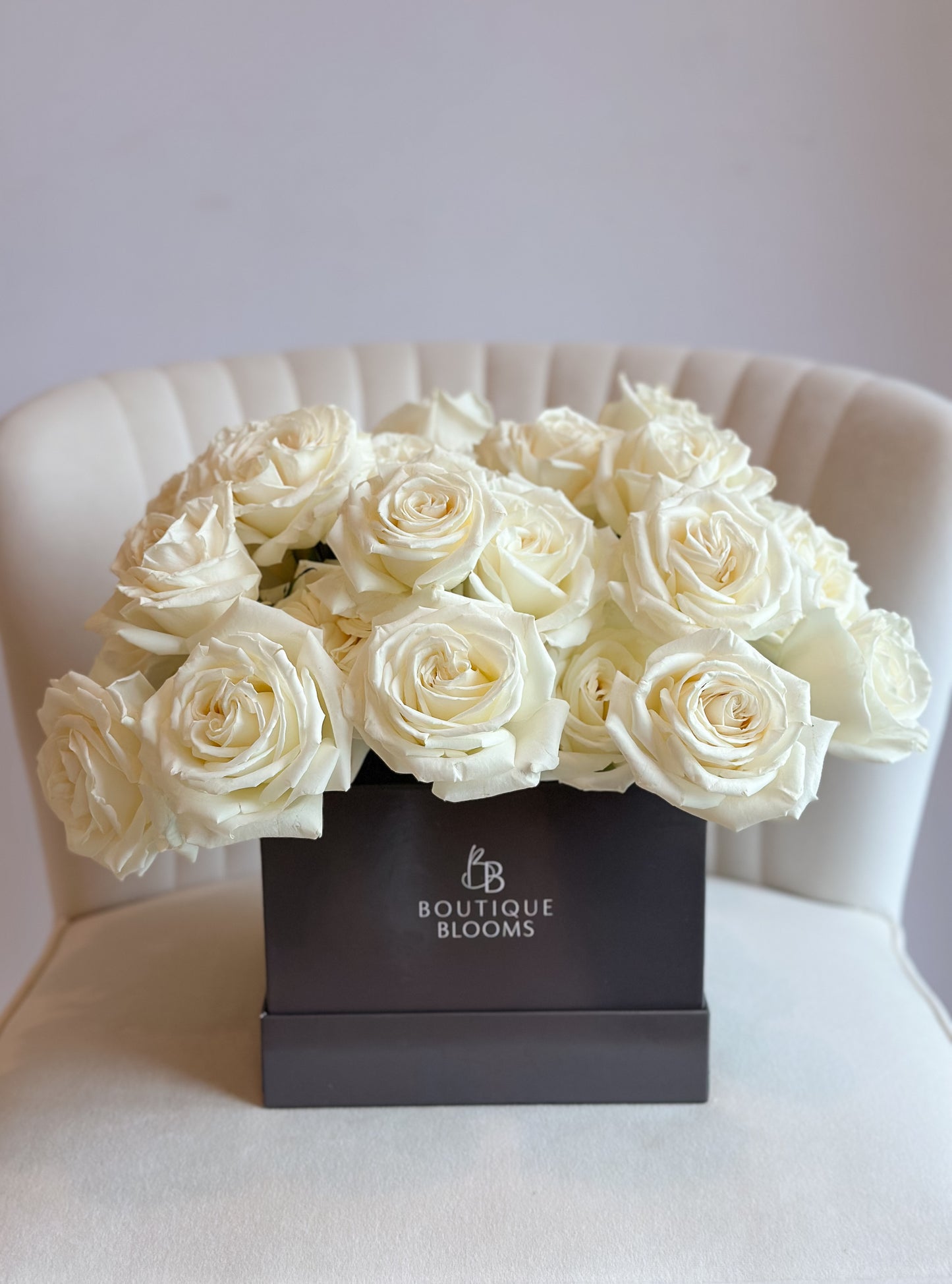 Make someone's day with this luxury rose box. Featuring 36 premium white roses arranged in our signature square bloom box. The perfect birthday gift, engagement arrangement, or a sweet "thinking of you". This charming bouquet always delivers a touch of luxury and elegance.